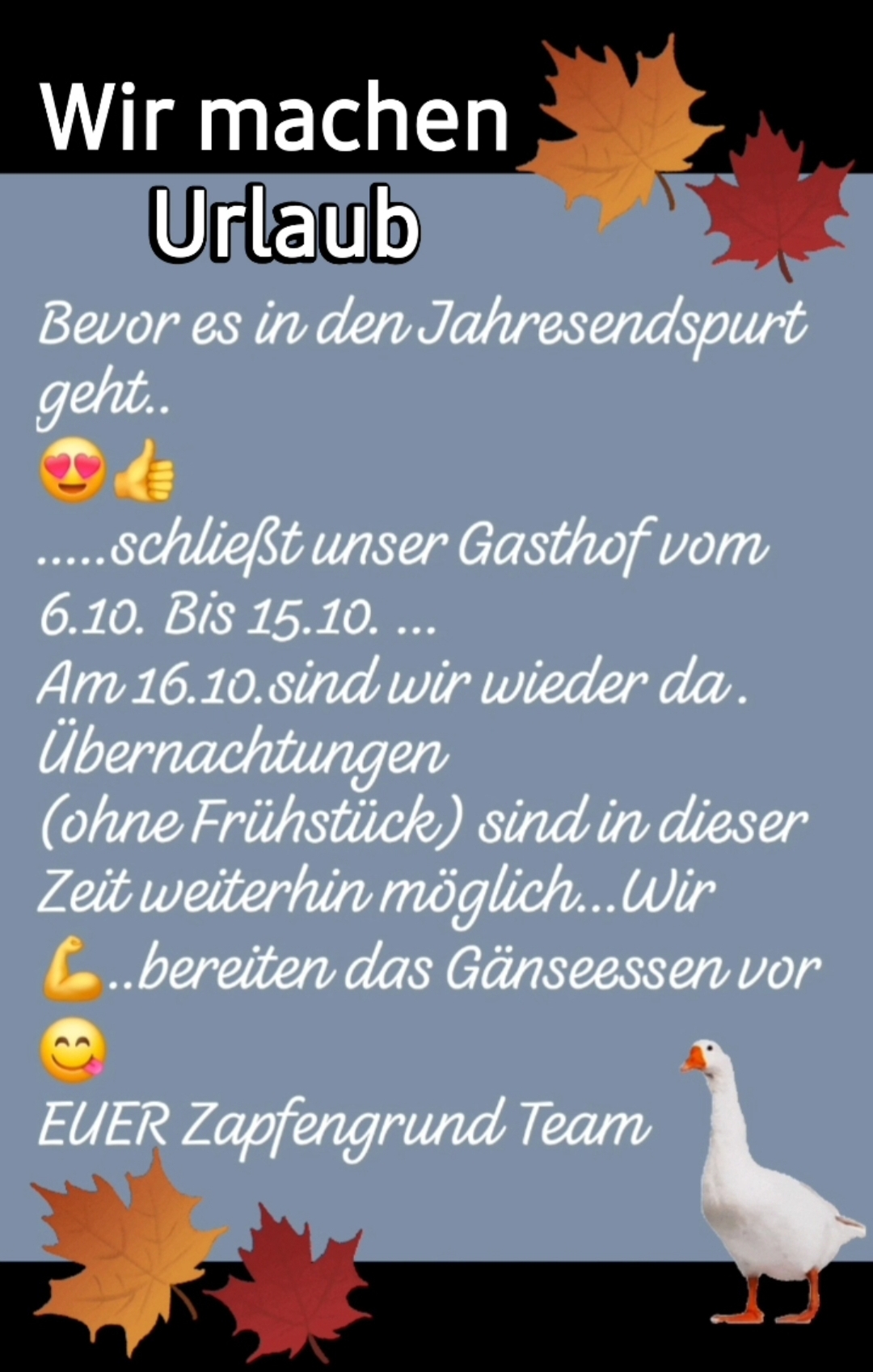 Willkommen im Gasthof / Pension Zapfengrund UG